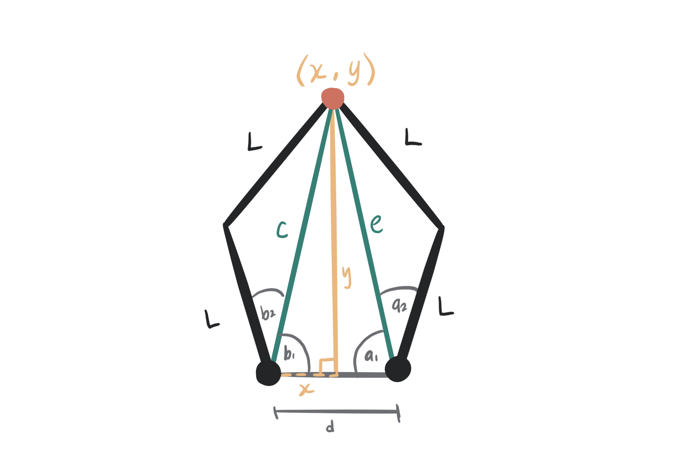 Ok do you see how the star is warped? Like its kind of squished in the Y axis? I spent SO LONG trying to figure out why this was happening. The MATLAB simulation helped me prove it wasn't a code issue, and when I was looking at the mechanical system I realized that I think this five-bar linkage setup is a little fundamentally flawed. Especially compared to the X-axis, the Y-axis is controlled by such minute changes in servo angles that it makes it really hard to accurately control - especially given the generic servo motors that I had. I think if I had all the time in the world I would experiment with better servo motors with higher step resolution, or potentially switching to motors and trying to do some fancy gear ratio stuff.